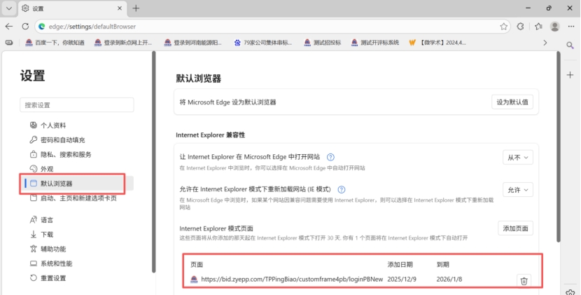 在浏览器设置—默认浏览器—兼容性模块中,删去bid.zyepp.com开头的网址地址。